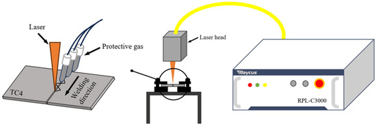 With the increasing demand for simplified structure and reduced weight, TC4 titanium alloy, possessing the advantages of low density, excellent corrosion resistance, high strength, and biocompatibility, has replaced some alloys and become one of the commonly used engineering materials in the fields of aerospace, medical care, biomedical science, biomaterials, petrochemical engineering, and others. However, TC4 titanium alloy is characterized by its difficulty in cutting, high melting temperature, high strength, low thermal conductivity, and high reactivity to oxygen, which pose stringent requirements on welding conditions [1,2,3]. In recent years, with the development of welding technology aimed at improving welding quality, efficiency, cost-effectiveness, and safety, numerous welding techniques for TC4 titanium alloy have been developed. Among various welding techniques, laser welding stands out as a commonly used method for welding titanium alloys. Laser welding is a special fusion welding method that utilizes high energy density focused laser beams as a heat source to heat and melt workpieces, forming fusion welding based on the photothermal effect of the interaction between laser and material. Compared with other traditional welding processes, laser welding has characteristics such as minimal welding deformation, strong penetration, a small heat-affected zone of the weld, and beautiful weld formation, thus having broad application prospects in the welding of TC4 titanium alloy sheets and precision parts [4,5,6].