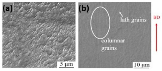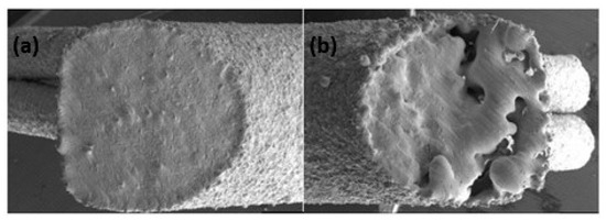 SEM image of the left side (a) and right side (b) of the ring shank surface (red color arrow in Figure 13a), Reprinted from ref. [32].