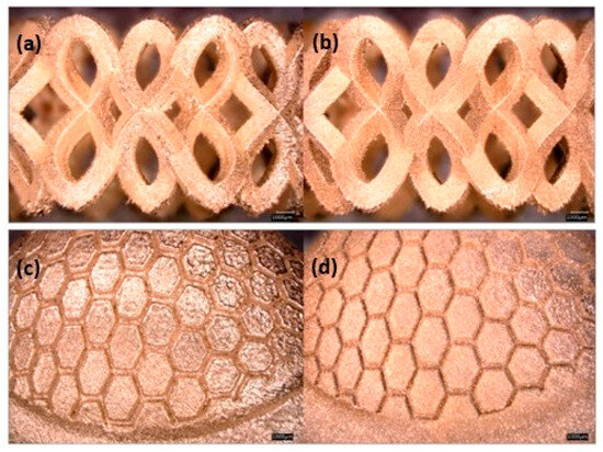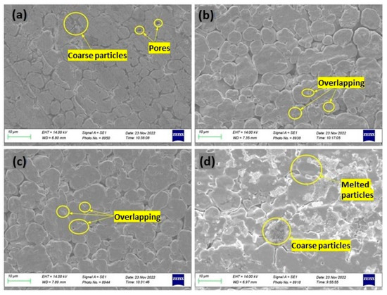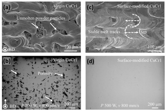 Effect of particle size distribution on the resolution and quality of the obtained surfaces: (a) and (c) PSD < 63 μm; (b) and (d) PSD < 15 μm, Reprinted from ref. [47].