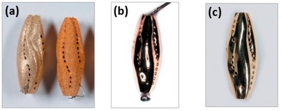 - Fletcher, D. The Precious Project: Polishing and Finishing of Additive Manufacturing (AM) Jewelry. 2018. Available online: https://www.santafesymposium.org/2018-santa-fe-symposium-papers/2018-precious-project-polishing-and-finishing-additive-manufacturing-am-jewelry (accessed on 31 May 2018).