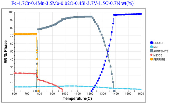 JMatPro simulation (Version 12.4) of V4E PM cold work tool steel with 0.7% nitrogen.