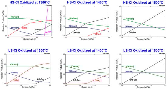 FactSage calculation results for the oxidation of HS-CI and LS-CI at explored temperatures.