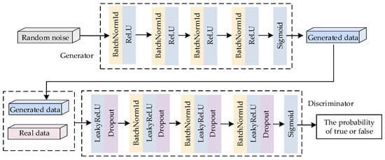 - Three GAN data augmentation models with different activation functions are constructed, and a data fusion criterion generated based on the root mean squared error (RMSE) and the coefficient of determination (R2) is designed, which can improve the global features’ ability to represent a generative network and the quality of the generated data.