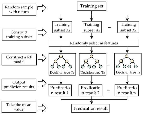 - Repeating step (1) n times, a total of n training subsets are obtained, forming n decision trees, and all the decision trees are combined together to obtain an RF model.