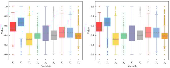 - Whether the set threshold reached (ψ(D,R) > 0) is determined. If the threshold condition is met, the selected variable is output; otherwise, the second step is performed.