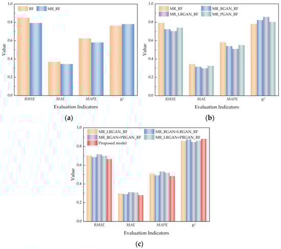 - Steps (2) and (3) were repeated following the same method to obtain the generated data D2 and D3 under LRGAN and PRGAN, respectively, as the extended data for training set D. Then, they were input into the RF model and evaluation indexes C2 and C3 were computed sequentially.