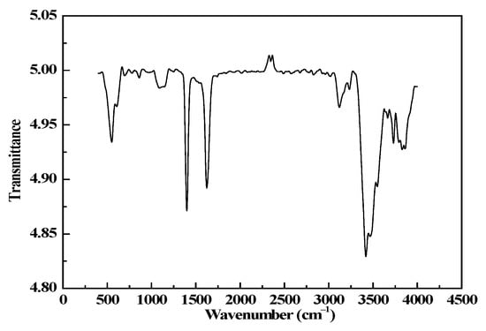 The FT-IR result of the Ti3C2Tx is shown in Figure 2. There are three characteristic peaks of Ti3C2Tx in Figure 2, corresponding to C=O stretching vibrations, O-H bending vibrations and O-H stretching vibrations at 1633, 1393 and 3446 cm−1, respectively.