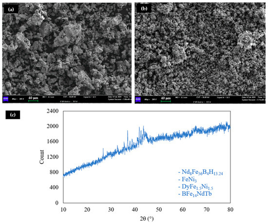In recent years, there has been an increasing demand for rare earth elements (REEs) due to their widespread use in advanced industries such as automotive manufacturing, renewable energy technology, computer and electronic products, and refineries [1,2,3]. The special physical and chemical properties of REEs make them a good choice for producing permanent magnet alloys. NdFeB magnets are considered to be the most powerful magnets [4]. These magnets are used in hard disk drives (HDDs), hybrid vehicles, wind turbine generators, smartphones, and other electrical and mechanical devices [1,5,6]. Due to the increase in demand and rising price of REEs, as well as the attendant risks of supplying them (~65% of these elements are supplied by China [3]), the REEs have been included in the list of critical elements compiled by the European Commission [4,7]. Although REEs can be found in some ores, their low concentration (0.2% to 1.4%) makes their extraction processing difficult and expensive. The critical situation regarding the supply of REEs and the problems of replacing them with other elements have focused much attention on the potential value of permanent magnet waste as a secondary source of REEs. It should be noted that the permanent magnets contain about 30% REEs [5,8].