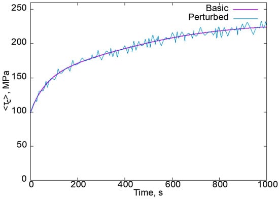 An important extension to the stability analysis is the consideration of the output data response to the operator perturbation proposed here. The topicality of analysis of the influence of operator perturbations on the solution is associated with the fact that some physical processes described by the deterministic CM are in fact stochastic processes. Namely, these include the acts of interaction of defect structures at the microscale level, which are effectively considered through the mesolevel relations for critical shear stresses on dislocation intragranular slip systems []. Real scenarios for defect-substructure interactions can differ significantly during deformation. For instance, the authors of [] present an approach to stability analysis that implies the consideration of operator perturbations through its parameters; the form of the operator is assumed to be relatively simple. Hence, it can be concluded that the apparatus based on Lyapunov methods is being developed, but for the general case of a nonlinear operator, in which the perturbations of different types (initial conditions, history of influences, operator) are considered, it is hardly possible to construct an analytical procedure for assessing stability.
