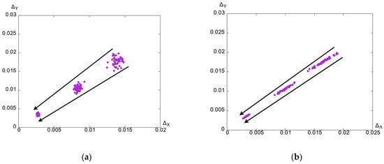 Other well-known methods for the analytical study of stability are based on the Lyapunov first method (estimation of stability by the first approximation) [,]. It is worth to note here that the analytical expression of the first approximation matrix for some CMs, for instance, those that include an algorithmic definition of the operator in the right-hand side of the differential equation in elastoplastic models [], may, under certain conditions, not exist or have a very complex form. In the general case, due to the presence of numerous interacting IVs in multilevel CMs (at least, several tens of thousands), the matrix can be a high dimensional matrix, eigenvalues cannot be found analytically, and numerical methods do not provide a guaranteed determination of all roots of a nonlinear equation. Moreover, the nonlinearity and large dimension of the matrix provoke a need for significant computational resources. This is also characteristic of the case when the negativity of the real parts of all roots, for example, Hurwitz or Mikhailov criteria, are estimated []. In addition, the application of these methods to the analysis of high-dimensional matrices may lead to the accumulation of computational errors.