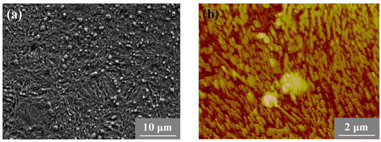 The microstructures of materials. (a) Scanning electron microscopy micrographs, (b) atomic force microscopy micrographs.