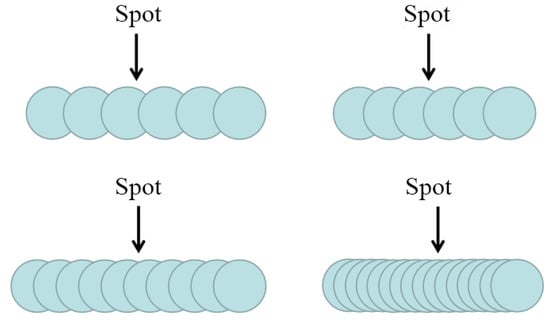 The frequency of a pulsed laser refers to the number of times the laser operates within a unit time, as illustrated in Figure 12. In this experiment, the unit time is one second. When the welding speed remains constant, changing the frequency effectively alters the density of the laser spots along the welding path, which affects the overlap of the laser beams. Therefore, varying the frequency can significantly influence the welding outcome.