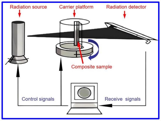 The setup involved positioning the X-ray source and detector at precise distances from the sample: the source was 2.75 m away, while the detector was positioned 3.4 m from the source. This configuration optimized the resolution and accuracy of the CT imaging, ensuring that even subtle details in the composite structure could be captured and analyzed. The experimental setup is illustrated in Figure 3.