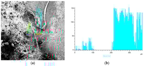 To further understand the compositional characteristics at the interface, elemental line scans were performed across the ceramic and matrix phases. The results are presented in Figure 7.