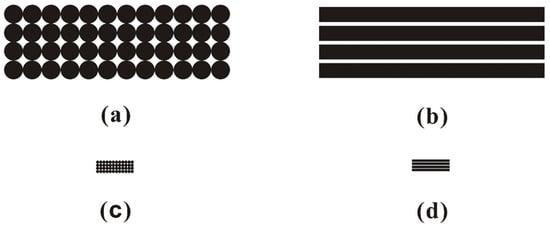 To answer this question, let us first examine a set of pictures. Figure 6 shows two configurations consisting of points and lines, analogous to the ladder structure on the ( 1 2 ¯ 1 ) side and the wall structure on the ( 111 ) side, respectively. When these two configurations are reduced to a certain scale, it becomes impossible to distinguish whether they consist of points or lines, which is similar to what we encounter when observing the dislocation configurations in FCC crystals. Although the configurations of dislocations are point defects and line defects, resulting from different observation plane selections, it becomes challenging to distinguish between the ladder structure and the wall structure. Similarly, the wall structure on the ( 1 2 ¯ 1 ) side is also different from the wall structure on the ( 111 ) side.