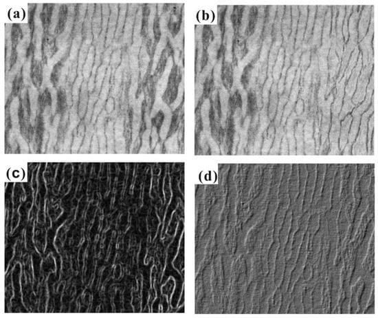 So far, we have a clear understanding of the PSB ladder and PSB wall structures, and the same principle applies to distinguishing between patch structures and vein structures. Next, let us examine the relationship between vein and wall structures. Figure 7 presents a set of shaded images depicting the two-phase structure of veins and walls. Figure 7b shows the result of properly processing the vein structure on the right side of the PSB wall. By attempting to leave only the dislocations at the junction of the vein and the channel, and removing the dislocations at the core of the vein, we can see that the vein portion has been transformed into a structure similar to the PSB wall. Figure 7c,d highlight the image contrast between wall and vein structures in two different ways. Although these images cannot serve as direct evidence, they reflect the internal relationship between veins and walls, as well as patches and ladders. We know that the wall structure results from the evolution of veins, where the dislocation-dense areas are further compressed. Figure 7 supports this reasonable judgment.