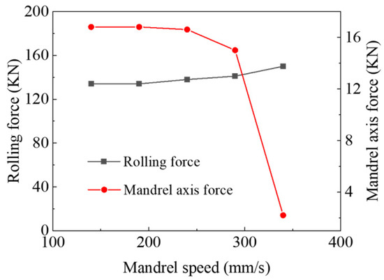 Rolling force and axial force of mandrel at different mandrel speeds.