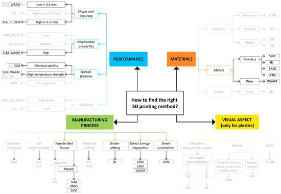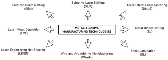 After describing non-metallic additive manufacturing methods, Figure 4 gives an overview of metallic 3D printing techniques, which will be discussed in detail in the following sections.