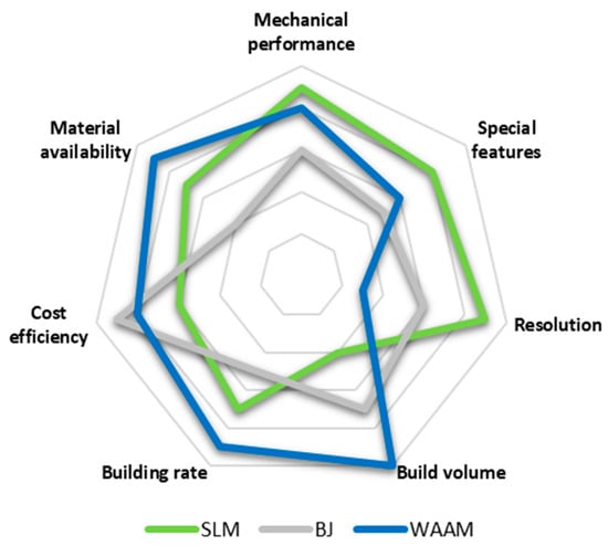 There are also other factors that must be taken into account, including material availability, as not all metals are readily available in powder or wire form for 3D printing, and the type and cost of post-processing, as some metals require post-print heat or surface treatment. Finally, the environmental impact of the production process and material use must be considered, as this is an increasingly important factor nowadays [62].