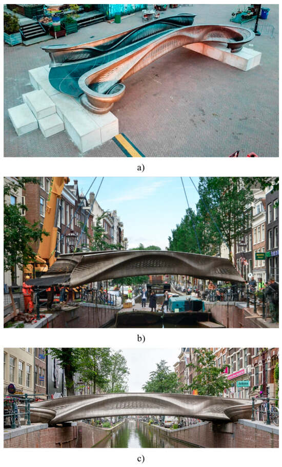- Gardner, L.; Kyvelou, P.; Herbert, G.; Buchanan, C. Testing and Initial Verification of the World’s First Metal 3D Printed Bridge. J. Constr. Steel Res. 2020, 172, 106233. [Google Scholar] [CrossRef]