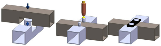 - Baptista, R.J.S.; Pragana, J.P.M.; Bragança, I.M.F.; Silva, C.M.A.; Alves, L.M.; Martins, P.A.F. Joining Aluminium Profiles to Composite Sheets by Additive Manufacturing and Forming. J. Mater. Process. Technol. 2020, 279, 116587. [Google Scholar] [CrossRef]