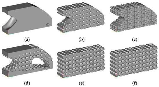 - Panesar, A.; Abdi, M.; Hickman, D.; Ashcroft, I. Strategies for Functionally Graded Lattice Structures Derived Using Topology Optimisation for Additive Manufacturing. Addit. Manuf. 2018, 19, 81–94. [Google Scholar] [CrossRef]