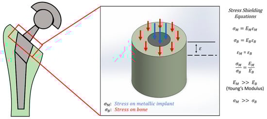 - Ridzwan, M.; Shuib, S.; Hassan, A.Y.; Ahmed Shokri, A.; Ibrahim, M. Problem of Stress Shielding and Improvement to the Hip Implant Designs: A Review. J. Med. Sci. 2007, 7, 460–467. [Google Scholar] [CrossRef]
