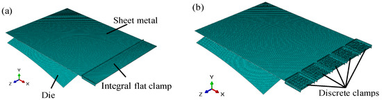 FE models of different forming methods: (a) SF-C and (b) SF-CMPC.