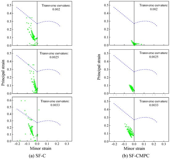 Strain distributions in the forming limit diagram: (a) SF-C and (b) SF-CMPC.