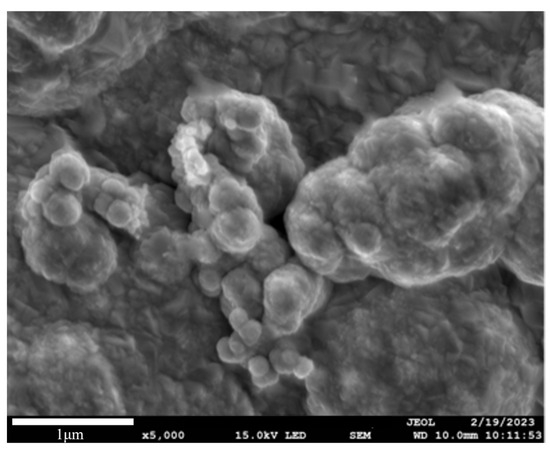 The SEM morphology of the Ni-SiO2 superamphiphobic coating after high-temperature treatment at 300 °C.