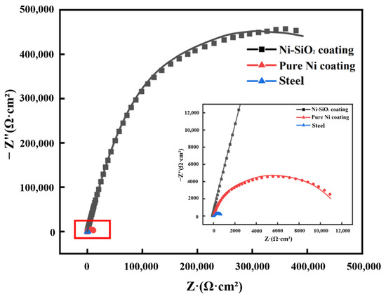Nyquist plots of bare substrate, Ni coating, and Ni-SiO2 superamphiphobic coating.