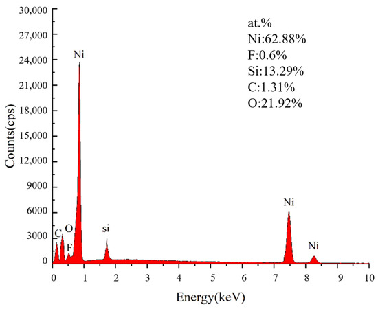 EDS diagram of Ni-SiO2 superamphiphobic coating after high temperature treatment at 300 °C.