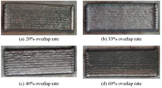 - Bu, X.; Xu, X.; Lu, H.; Liang, Y.; Bian, H.; Luo, K.; Lu, J. Effect of overlap rate on the microstructure and properties of Cr-rich stainless steel coatings prepared by extreme high-speed laser cladding. Surf. Coat. Technol. 2024, 487, 131025. [Google Scholar] [CrossRef]