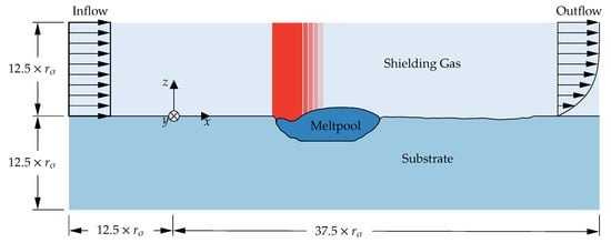 The powder layer was not taken into consideration in this work to reduce the computational effort of the parameter study. It was shown in preliminary studies and in the literature that this does not affect the results significantly [40]. Thereby, less spatial resolution was needed in comparison to simulations that fully resolve the powder particles.
