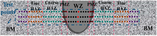 Diagram of microhardness in the cross section of the joint (Different colors represent different test areas).
