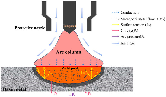 The welding system consisted of a DP-VPTIG welding machine (Huazhi Welding & Measuring Co., Suzhou, China), a welding torch, a water cooling system, a gas shielding setup, a workbench, and a travel control component.