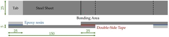 The joints were made in accordance with the Standard D1002 [], as shown in Figure 1.