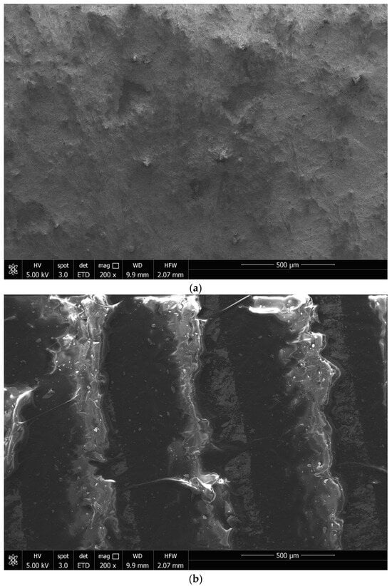 The results of this analysis are shown in Figure 8. In particular, it is evident that the failure surface of the “Primer” sample (see Figure 8b) does not have the typical steel structure as the surfaces of the “Clean” and “Promoter”, but that there are the luminescence zones indicating the changes induced by the primer [,].
