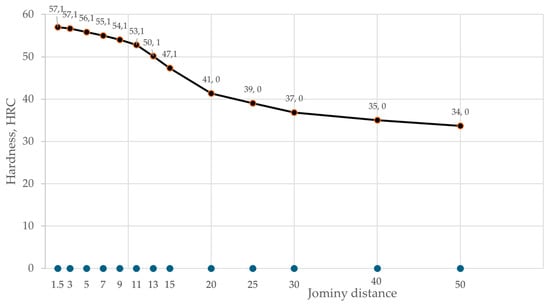 Designing the chemical composition of the steel with the required properties is a crucial task from a manufacturing point of view [,,,,]. Knowing the required hardenability for machine parts or tools enables the design of a steel with an optimal chemical composition. Such a steel will have adequate hardenability, for specific application. The quenching and tempering of steels with insufficient hardenability does not provide appropriate hardness in deeper layers and can cause functional problems. On the other hand, excessive hardenability indicates the usage of a surplus of alloying elements and thus increases the cost.