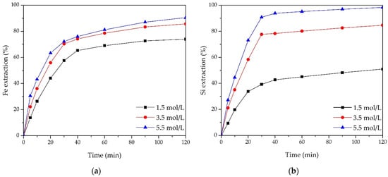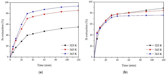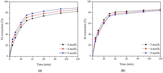 3.1. Effect of Leaching Parameters on Fe and Si Extraction