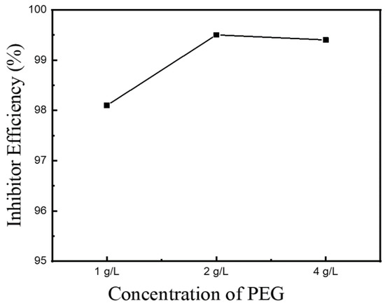 Correlation between corrosion inhibitor efficiency and concentration of PEG.