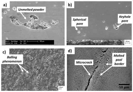 - Leo, P.; D’ostuni, S.; Perulli, P.; Sastre, M.A.C.; Fernández-Abia, A.I.; Barreiro, J. Analysis of microstructure and defects in 17-4 PH stainless steel sample manufactured by Selective Laser Melting. Procedia Manuf. 2019, 41, 66–73. [Google Scholar] [CrossRef]