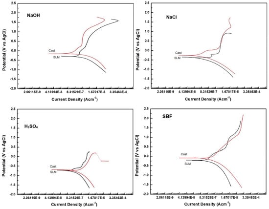 - Sharma, A.; Oh, M.C.; Kim, J.-T.; Srivastava, A.K.; Ahn, B. Investigation of electrochemical corrosion behavior of additive manufactured Ti–6Al–4V alloy for medical implants in different electrolytes. J. Alloys Compd. 2020, 830, 154620. [Google Scholar] [CrossRef]