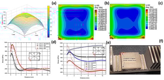 - Ahmad, B.; van der Veen, S.O.; Fitzpatrick, M.E.; Guo, H. Residual stress evaluation in selective-laser-melting additively manufactured titanium (Ti-6Al-4V) and inconel 718 using the contour method and numerical simulation. Addit. Manuf. 2018, 22, 571–582. [Google Scholar] [CrossRef]