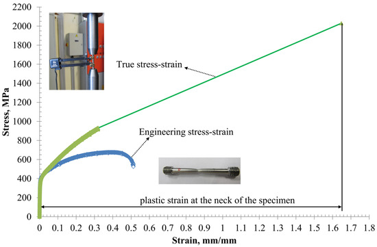 Experimentally obtained engineering and true stress–strain curves.