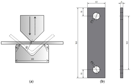 Procedure of the bending process (a) and dimensions of the bending billet (b).