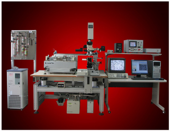 The in situ observation of the material heating process was conducted using high-temperature confocal laser-scanning microscopy (HTCLSM, Yonekura MFG. CO., LTD., Miyagi, Japan). This method’s sophisticated equipment (Yonekura MFG. CO., LTD., Miyagi, Japan) integrates multiple advanced systems, including a high-temperature furnace, an imaging system, a temperature control system, and a computer system. Additionally, it features a tensile furnace, a protective gas system, a cooling system, a workbench control system, a tensile control system, and an image detection system, as illustrated in Figure 1.