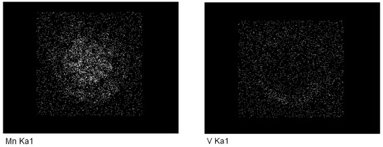 In Figure 7, the mapping analysis of the alloying elements in the dark precipitated phases shows areas similar to those marked by arrows in Figure 6, which contain dark particles. Initially, the precipitates appeared circular, but as they grew, their shapes became irregular. EDS was employed to analyze the composition of these precipitated phases. The chemical compositions of the three positions indicated in Figure 6 reveal that the dark precipitated phases contained significantly higher concentrations of alloying elements such as Cr, V, and Mn compared to the matrix. This suggests that the precipitation of the dark phases may be due to the segregation of these alloying elements during the thermal process.