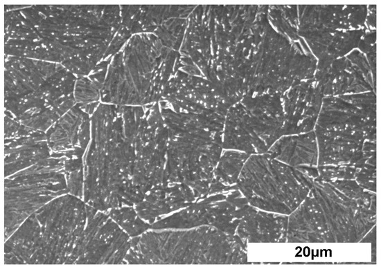 The chemical composition of the steel used in this study was experimentally measured through optical emission spectroscopy (OES) (Waltham, MA, USA), and the results are detailed in Table 1. Steel ingots were produced using a 50-kg vacuum-induction furnace and subsequently forged into blocks with dimensions of 120 mm × 120 mm × 260 mm. These blocks were then soaked at 1200 °C for a minimum of one hour to ensure uniform temperature distribution and homogenization. Following the soaking process, the blocks were hot-rolled into plates with a cross-sectional dimension of 20 mm × 150 mm.