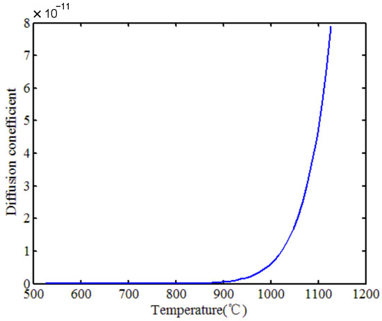 The precipitation and dissolution processes of Cr7C3 have a significant impact on the mechanical properties of steel [27]. Figure 10 illustrates the effect of temperature on the diffusion coefficient of Cr7C3 in steel.